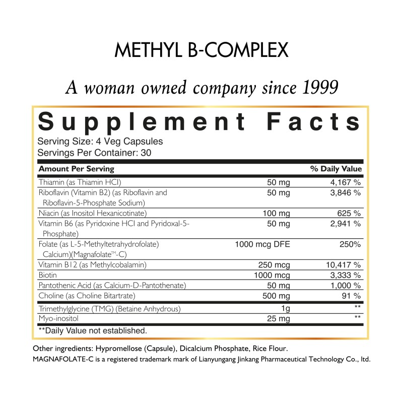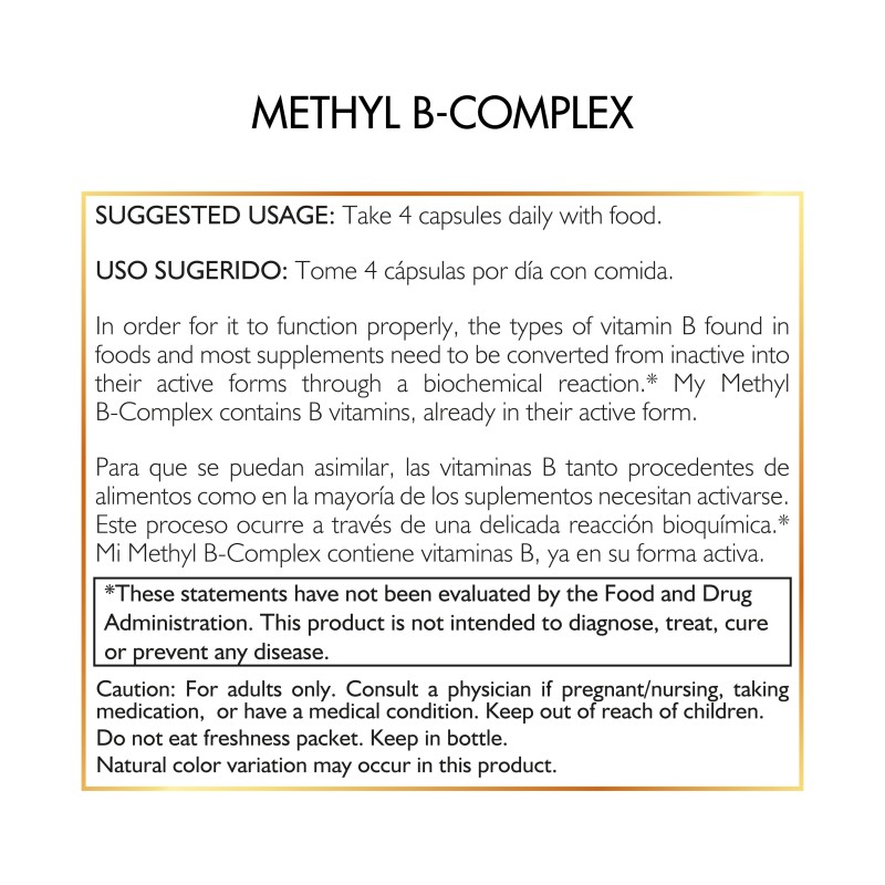 • High absorption: My Methyl B Complex formula is activated in its co-factor form or "coenzymes," which are needed to provide optimal tissue absorption.