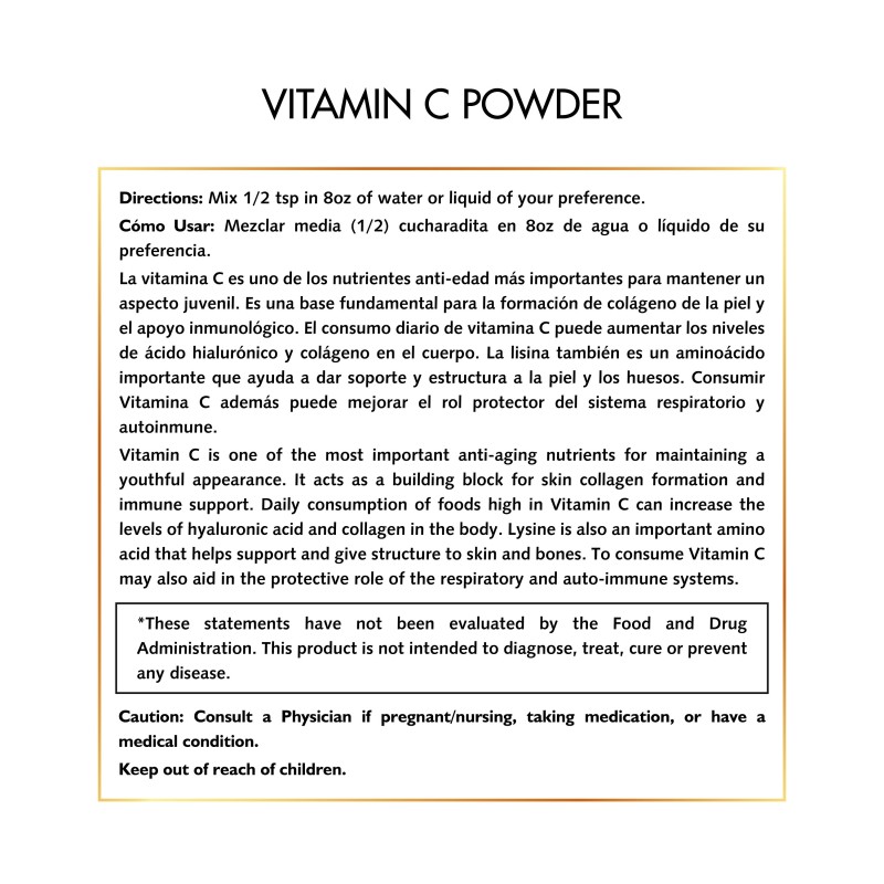 1000 mg Vitamin C Powder By Cocó March - Collagen Production; Immune Support, Includes Zinc, Bromelain, Quercetin, L-Lysine, Free From: Gluten, Dairy, Soy, GMOs, Vegan and Keto Friendly - 9.71 oz (277 g) - 100 Servings.
