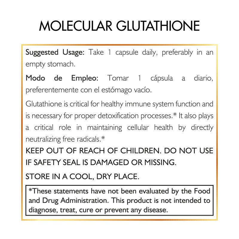 Molecular Glutathione By Cocó March - Potent Skin Antioxidant, Supports Detoxification And Healthy Aging, Low Molecular Weight, Gluten Free, Soy Free, Dairy Free, Vegan, GMO Free, 500 Mg Per Serving - 60 Veg Caps - 60 Servings.