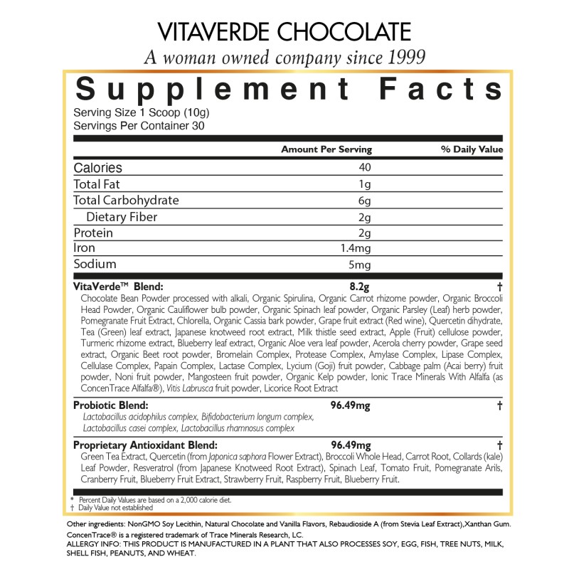 • Rich chocolate flavor: VitaVerde™ and VitaProteina™ Chocolate both have a rich chocolate taste that makes for a healthy treat.