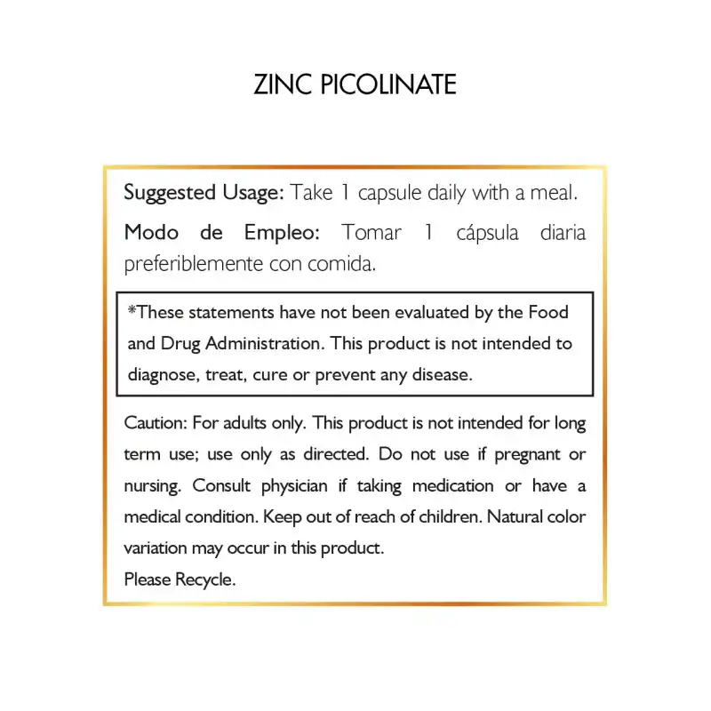 Zinc Picolinate By Cocó March - Immune System Aid, Skin Enhancement, Bio-Available Form For High Absorption - Gluten Free, Soy Free, Dairy Free, GMO Free, Vegan - 60 Servings.