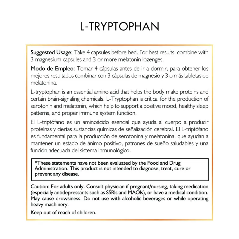 Modo de Empleo: Tomar 4 cápsulas antes de ir a dormir, para obtener los mejores resultados, combinar con 3 cápsulas de magnesio o más tabletas de melatonina.