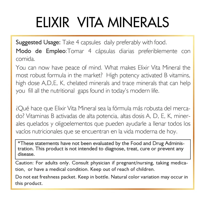 Precaución: Sólo para adultos. Consulte al médico si está embarazada/amamantando, tomando medicamentos o si tiene una condición médica. Mantener fuera del alcance de los niños. Mantener en botella. Puede ocurrir una variación de color natural en este producto.